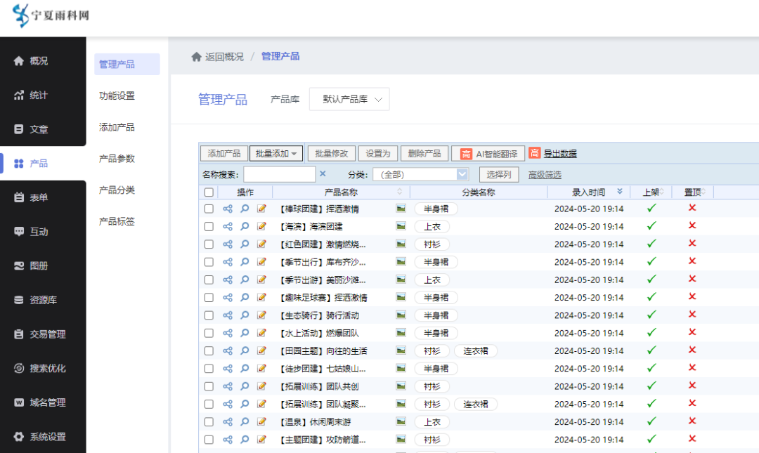 资源库、交易管理及搜索引擎优化、网站域名绑定/备案等整套流程打通,除了国内发展,还可开通国际版,企业开通海外网站宣传获客询盘、谷歌优化和多平台触达等。现成建站系统和精美模板替换,没有高超的建站技术也可(有则更好),现成模块拖拽式操作,增减替换自己的内容,背景、布局、页面链接等,多操作几遍就可熟悉。