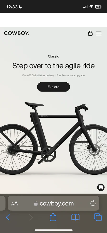 缩短加载时间 Google 建议最好在一秒内加载完成首屏内容(您在向下滚动页面之前看到的内容),以允许用户尽快开始与您的网站进行互动。据估计,在一秒内加载的网站比在五秒内加载的网站转化率高 2.5 倍,这意味着加载速度慢可能会让您花更多的营销费用。 不过,也有一些简单的方法可以缩短您的移动网站加载时间:- 通过压缩图像并使用 WebP 等下一代格式来优化图像。- 使用Web设计技术实现非首屏内容的延迟加载。- 减少需要额外 HTTP 请求的第三方脚本。- 尽量减少 CSS 和 JavaScript语言的使用。- 使用内容分发网络 (CDN) 将内容从更靠近其地理位置的服务器分发给用户。- 使用浏览器缓存,以减少回访移动访客的后续加载时间。 许多 CMS 平台将这些方法作为其整体框架的一部分,作为其提供的主题的一部分,或通过兼容的应用程序和插件。Shopify 为其平台的用户提供所有这些功能。 使用触控友好型设计 通过使用更大的输入字段、下拉菜单和触摸友好元素,在设计表单时考虑到移动用户。尽量减少弹出窗口,这些弹出窗口在移动屏幕上可能难以关闭(或使关闭按钮更大且易于点击)。避免悬停交互,因为这些操作无法在移动设备上完成。相反,加入滑动、捏合和点击等手势以获得更好的交互。 垂直化设计 与PC端不同,移动设备通常是垂直使用的:屏幕高度大于宽度。因此,您应该确保移动网站符合这一方向。 将最重要的内容(关键消息、行动号召CTA和主要导航)放在屏幕顶部。将交互式元素保持在拇指触手可及的范围内,并包括一个选项卡栏,以便从拇指可以自然触及的页面底部导航。 优化CTA 号召性用语CTA提示促使用户采取行动并更深入地与您的网站和内容互动。以下是针对移动设备优化CTA的一些最佳实践:- 确保CTA大且触手可及:至少48像素×48像素。- 将 CTA 放在屏幕的中间或底部,以便于拇指(滑屏时)触达。- 在 CTA 周围添加填充(文本和按钮边缘之间的空间)以防止意外点击。- 使用高对比度的颜色使 CTA 脱颖而出。- 使用简短、以行动为导向的语言,例如“立即购买”、“了解更多”或“注册”。- 使用响应式设计在各种移动设备上测试 CTA,并实施 CSS 媒体查询以根据屏幕宽度调整 CTA 样式。 保持简洁的文本 移动设备的屏幕很小。大量副本可能会让人不知所措且难以读取信息,尤其是对于注意力持续时间有限的观众。 聚焦最相关的信息,增加文本大小,并确保所有文本都可读,而无需放大。将 Helvetica 和 Open Sans 等无衬线字体(sans serif fonts)用于正文文本,这些字体在移动设备端尤为易读。4有效的移动网页设计示例 电动自行车零售商 Cowboy 就是一个例子,该品牌的网站结构良好且适应移动设备。以下是其非常适合移动用户的一些元素:- 尽管包含许多图像、GIF 和交互式元素,但该站点仍会立即加载。- PC版本使用带有图像的下拉菜单,但在移动设备上,它被简化为汉堡菜单。- 首页以大而简化的文字为特色,首屏上方有一个醒目的店铺 CTA。- 在角落很容易找到聊天图标以获得客户支持。- 产品页面设计为适应移动端用户而垂直化布局。- 底部选项卡栏具有“立即订购”号召,拇指滑屏触手可及。