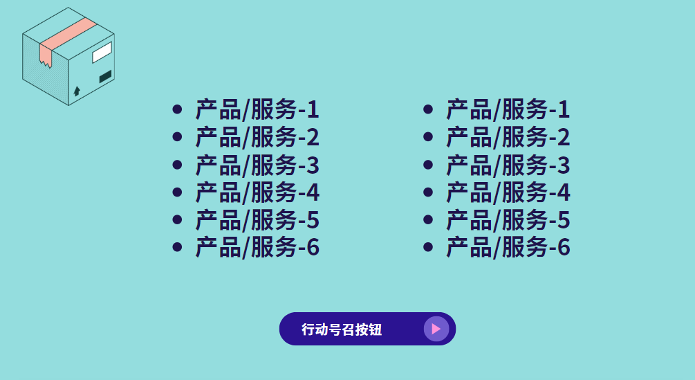 第五:具体服务菜单区这个部分里,你需要列出一系列企业提供的各个产品或者服务,每个产品和服务设置一个超链接链接向对应页面。